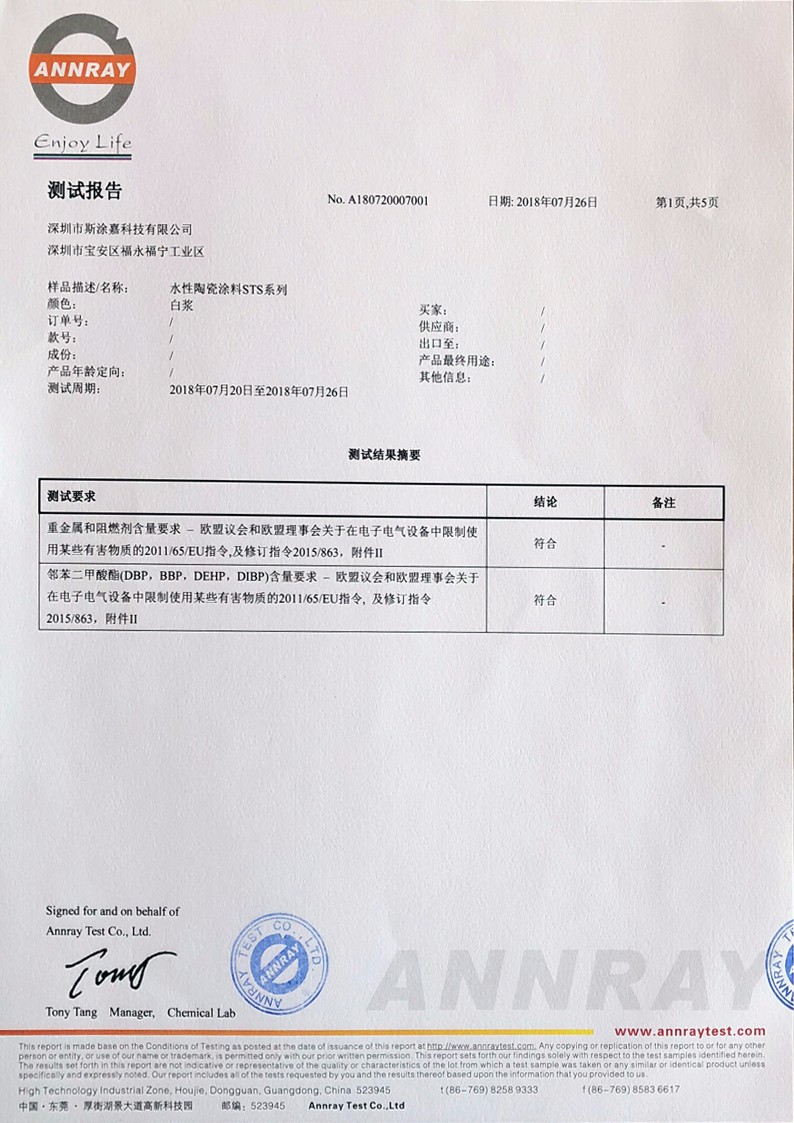 水性陶瓷涂料STS檢測(cè)報(bào)告2018